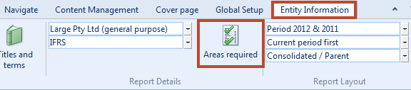 open the Areas Required dialog.