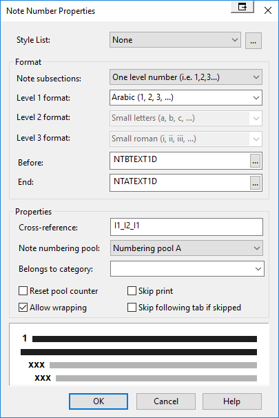 Within the Note Number Reference dialog, complete the following steps: