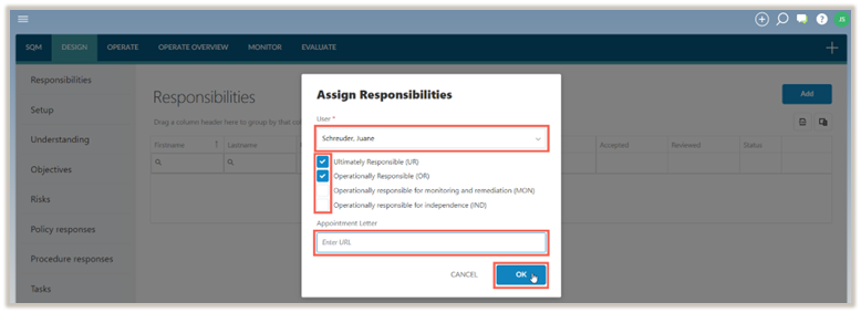 The responsibilities are then reflected in a new dialog, where the individual must click on Accept to sign-off.