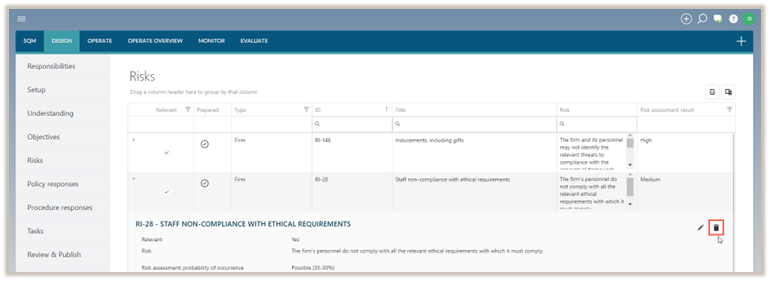 Effective to | This is an optional field and will be left blank if the risk will remain in effect for the foreseeable future. When it is decided that a risk will no longer be applicable from a specific date, the date on which the risk will no longer apply to the firm’s system of quality management is recorded in this field. The change can then be published to the firm’s system of quality management in advance and the risk itself, will be in operation until the sunset date is reached. |