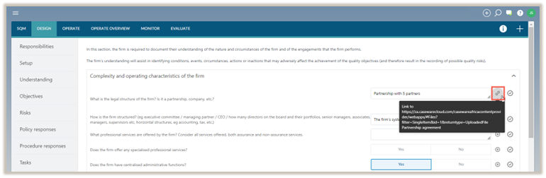 URLs can either be to a document in the Caseware Cloud instance or to another location, such as the firm’s SharePoint library.